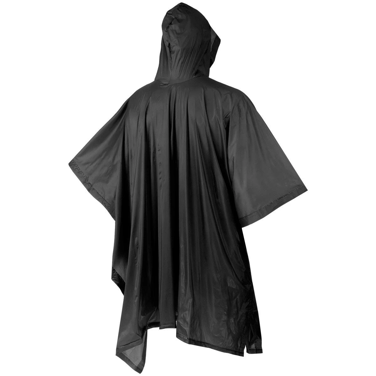poncho features a hood, two press buttons on sides and welded seams.