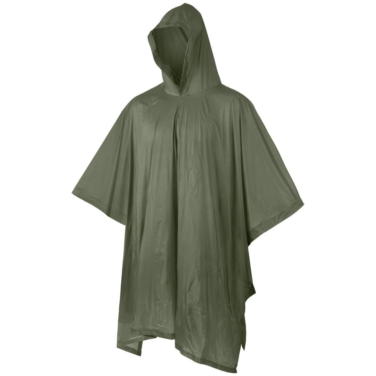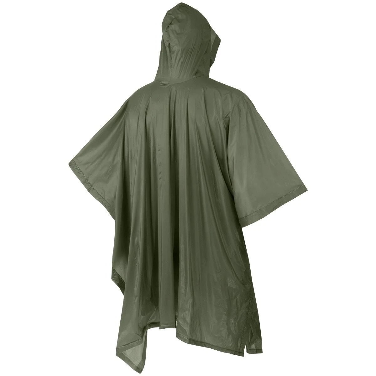 poncho features a hood, two press buttons on sides and welded seams.